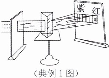 典例1 如图所示,在光的色散实验中,太阳光经平面镜反射后,通过狭缝射向三棱镜,发现光屏上色光的种类偏少。为了在光屏上观察到更多种类的色光,以下可行的操作是 ( )