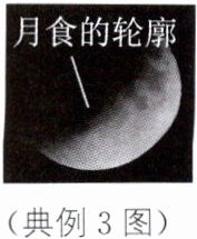 典例3 如图所示为月偏食的示意图,月食的轮廓是弯曲的圆弧。下列事实与圆弧的形成无关的是 ( )