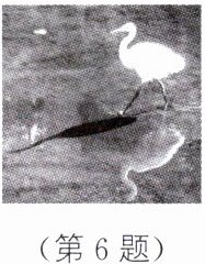 6. (2023·泰州)如图所示,一只水鸟站在水中觅食,图中的黑影是由光的______形成的,倒影是由光的反射形成的______像,且倒影看起来要“暗”一些,是因为有一部分光在水面处发生了______而进入水中,人能从不同角度看见水鸟是由于光照射在水鸟身上时发生了______。