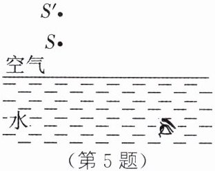 5. 如图所示,点S表示天空中的小鸟,点S'表示游泳者在水下看到的小鸟像,请画出游泳者看到小鸟的一条入射光线和对应的折射光线。(保留作图痕迹)