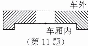 11. 车厢内,人眼贴着玻璃窗观察车外,请通过光路作图,标出人眼(图中黑点)看到车外的范围。(保留作图痕迹)