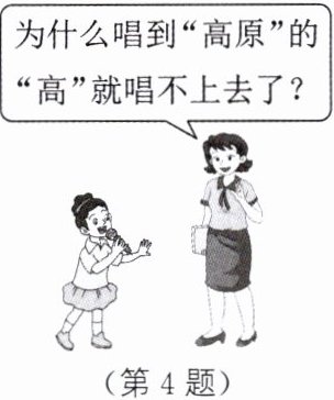 4. 如图所示,音乐老师所说的话是指唱到“高原”的“高”时,要求声音的( )