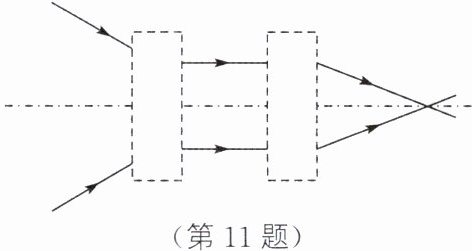 11. 如图所示,两个虚线框内各有一个透镜,它们的主光轴在同一直线上。请根据光路图在虚线框内画出合适的透镜。