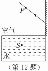 12. (2024·潍坊)如图所示,水槽内装满水,槽内有一点光源S,紧贴右侧槽壁竖直固定一平面镜。S发出的一条光线经水面折射,又经平面镜反射后过P点。