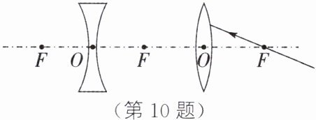 10. 如图所示,一束光射向凸透镜,请画出该光经过凸透镜、凹透镜的折射光路。