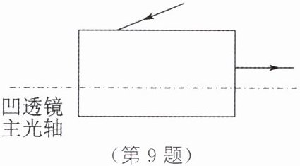 9. 如图所示,已知黑箱内有一个凹透镜和一块平面镜。请在黑箱内画出完整的光路,填上光学仪器,并标出凹透镜的焦点F的位置。