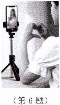 6. 如图所示,小明的妈妈在用手机拍视频。下列关于手机镜头成像的说法,正确的是 ( )