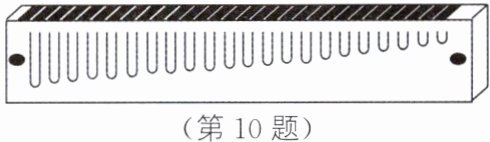 10. 小夏在研究口琴的发声原理时,拆掉了口琴外壳,发现气孔边分布着一排长短、厚薄都不同的铜片,如答案讲解图所示。吹口琴时,在气流的冲击下,铜片振动,发出声音。对不同的气孔吹气,改变了声音的______;在同一气孔处用不同的力度吹气,改变了声音的______。