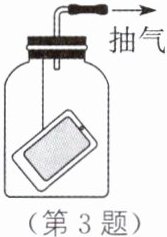 3. (2023·潍坊)如图所示,将正在响铃的手机悬挂于广口瓶内,封闭瓶口,逐渐抽出其中的空气。对比抽气前后从瓶中传出的响铃声音,下列分析正确的是( )