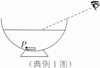 典例1 如图所示,向碗中加水至图示位置,请画出人眼刚好看到硬币上P点的光路图。