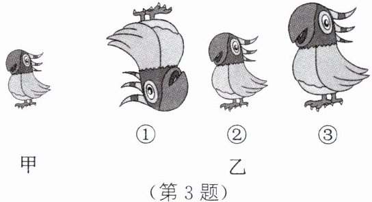 3. 将一玩具鹦鹉紧靠凸透镜,如图甲所示,然后逐渐远离,在远离的过程中,通过凸透镜观察到三个不同的像,如图乙所示,则三个像出现的先后顺序是( )