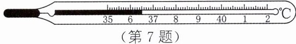 7. 体温计是根据液体______的规律制成的。体温计离开人体后,直管内的水银______(能/不能)自动退回玻璃泡,所以体温计能离开人体读数。如图所示的体温计示数是______°C。