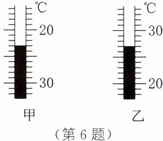 6. 使用温度计时,首先要观察它的量程和认清它的______。如图所示为小丽同学用甲、乙两支温度计分别测得的冰和水的温度,那么冰的温度是______°C,水的温度是______°C。