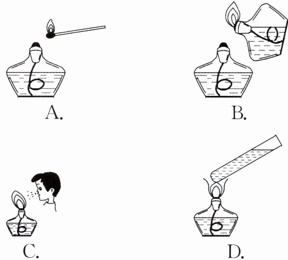 2. 下列关于酒精灯的操作,正确的是 ( )