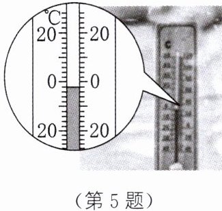 5. 如图所示为某同学用一只寒暑表测量下雪后室外温度的情景,下列说法中,正确的是 ( )