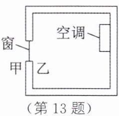 13. 如图所示,甲、乙分别为单层玻璃窗的室外一侧和室内一侧。在寒冷的冬天空调制热,在炎热的夏天空调制冷,玻璃窗上都会出现小水珠,则水珠( )
