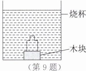 9. 如图所示,装水的密闭小瓶放在大烧杯里的水中间,把烧杯放在电冰箱的冷冻室内,过一段时间取出烧杯,发现烧杯中有一半的水结成了冰,此时小瓶中的水(标准大气压) ( )