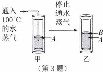 3. 人们都说:“被100°C的水蒸气烫伤,要比被100°C的热水烫伤严重得多。”小柯认为这是因为100°C的水蒸气和100°C的热水温度虽然一样,但100°C的水蒸气变成100°C的热水时,还需放出热量。对此,小柯设计了以下实验证明自己的观点。