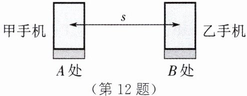 12. 某款功能强大的物理实验手机软件能够自动记录下所接收到的两次响声之间的时间间隔:当手机接收到第一次响声时便自动计时,当再次接收到响声时计时自动停止(类似于使用秒表时的启动和停止),由于对声音的响应非常灵敏,计时可精确到0.001s。甲、乙两人使用手机在空旷安静的广场上测量声音的传播速度。他们分别站在间距测量值为s的A、B两处,打开手机软件做好计时准备。甲先在手机边击掌一次,乙听到击掌声之后,也在手机边击掌一次。甲、乙两手机均有效记录下了两次掌声的时间间隔,分别为t甲、t乙。