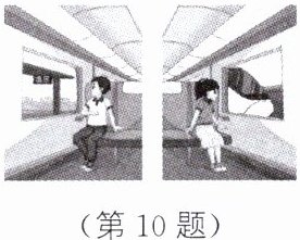 10. 如图所示,小明和小红坐在停靠在站台的火车车厢里,他们分别向两侧窗外看,对火车的运动情况产生了不同的观点。小明以窗外的站台为参照物,说火车是静止的;小红以窗外行驶的动车为参照物,说火车是运动的,则( )