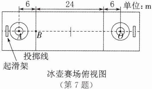 7. 易错题 (2024·乐山)如图所示,某次比赛中,运动员推着冰壶从A点运动6 m到达B点时轻轻松手,随后冰壶沿冰道运动30 m后停在O点。若运动员对冰壶的水平推力为9 N,冰壶运动中受到水平方向的阻力,大小恒定为1.5 N,从A点到O点冰壶沿直线运动,则此过程中( )