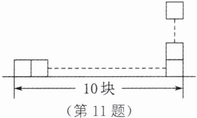 11. 一名学生在玩搭积木游戏时,将平放在水平地面上的完全相同的10块正方体实心积木一块一块地叠高,如图所示。已知每块正方体积木的质量为100 g,棱长均为5 cm,这个过程中人至少要克服积木的重力做功______J,叠高后的积木对地面的压强是______Pa。(g取10 N/kg)