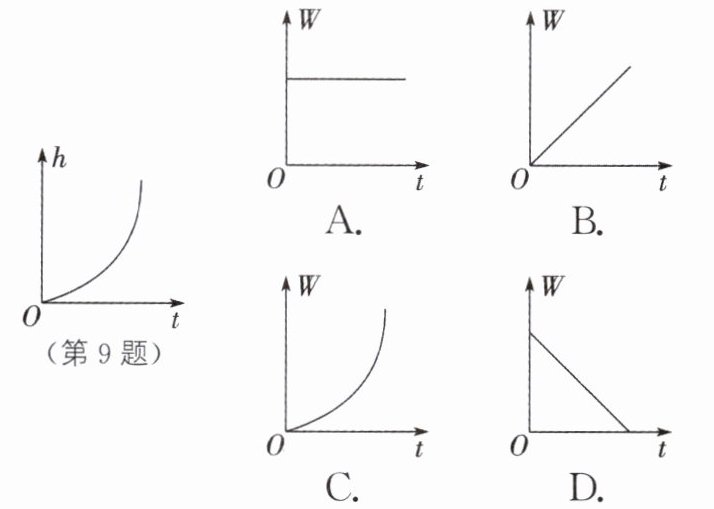 9.(2024·徐州模拟)如图所示为小球从高处由静止开始下落的过程中下落高度与时间的关系图像,下列有关重力对该球做的功与时间的关系图像,正确的是( )