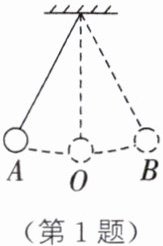 已知$A$、$B$两点等高,摆球从$A$点静止释放,经过最低点$O$到达$B$点,由于摆球在运动过程中需要克服空气阻力等因素做功,会有一部分机械能转化为内能,导致摆球到达$B$点时的机械能小于在$A$点时的机械能。
