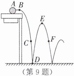 9. ★沿水平桌面自由滚落的排球的运动轨迹如图所示,C、F两处高度相同,D为排球与水平地面的接触点,忽略空气阻力,下列关于排球的说法,正确的是( )