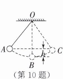 10. 在“探究动能和重力势能相互转化”的实验中,采用如图所示的实验装置。用细线把一个质量为m的小球悬挂起来,将小球从B位置拉到A位置,再由静止释放,观察小球在A→B→C的过程中的高度和速度的变化,并测出了小球在A、B、C三个位置时动能和重力势能的值,从而分析该过程中动能和重力势能之间的转化,数据如表所示。