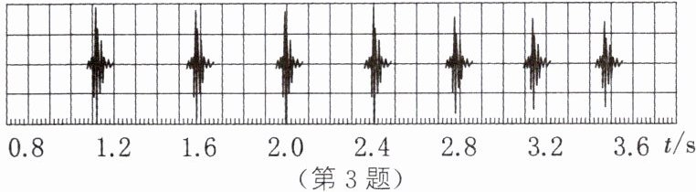 3.某手机软件具有录音和显示波形的功能。某乒乓球爱好者将一乒乓球从一定高度由静止释放,利用该手机软件记录下乒乓球碰撞台面时发出的声音,其波形随时间的变化如图所示。下列说法中,正确的是( )