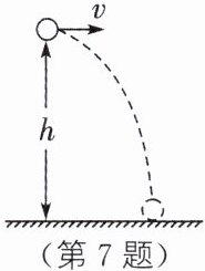 7.已知物体的重力势能表达式为E_p= mgh,动能表达式为$E_k= \frac{1}{2}mv^2;$其中m为物体的质量,h为物体距离水平地面的高度,v为物体的运动速度,g取10 N/kg,取地面为零势能面。如图所示,将一质量为0.4 kg的物体从距离地面1.5 m的高度沿水平方向以2 m/s的速度抛出。不计空气阻力,物体从被抛出到落地的瞬间,整个过程中机械能守恒。求: