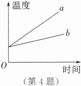 4. (2024·徐州)在探究不同物质吸热升温的现象时,将相等______的沙子和水分别装入易拉罐中,用相同的热源和方法加热,则单位时间内沙子和水吸收的热量______;如图所示,实验得到沙子和水的温度随时间变化的图像,其中a是______的图像。