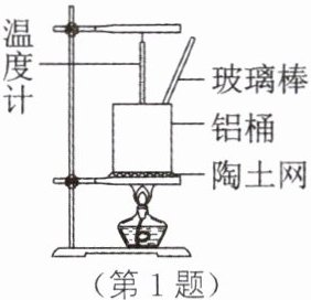 1. 用如图所示的两套相同装置探究不同物质吸热升温的现象,将相等质量的沙子和水分别装入铝桶中,用温度计测出它们的初始______,点燃酒精灯加热,用玻璃棒______沙子和水,观察到沙子升温比水快,由此可以推断,质量相等的沙子和水,升高相同的温度,______吸收的热量多。