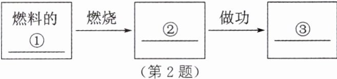 2. 热机在人类生活中发挥着重要的作用,推动了社会的快速发展。如图所示为热机工作过程中的能量转化原理图,其中①②③分别代表的是______能、______能、______能。
