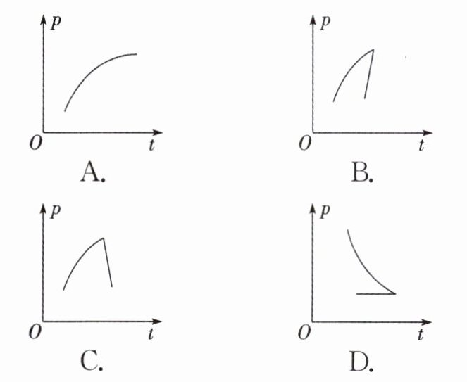 9. 下列选项能反映汽油机做功冲程中,汽缸内燃气压强p和温度t变化情况的是( )