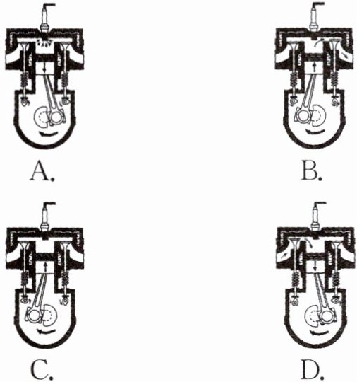 8. ★(2024·临沂)2024年4月20日,我国研制的全球首款本体热效率达53.09%的柴油机正式亮相世界内燃机大会,刷新了柴油机热效率的世界纪录。下列内燃机的四个冲程中,汽缸内气体的内能最小的是( )