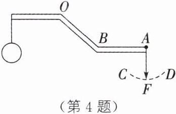 4. ★如图所示,轻质杠杆可绕$ O $点转动,在$ A 端通过细绳施加一个向下的拉力 F $,使细绳绕$ A 点从 D 点沿虚线 DC 按顺时针方向转动至 C $点,杠杆始终保持平衡,则在此过程中$ F $______,$ F $与其力臂的乘积______。(变大/不变/变小/先变大后变小/先变小后变大)