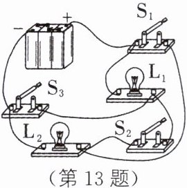 13. 在如图所示的电路中,如果闭合$S_1、$$S_2$且断开$S_3,$那么( )