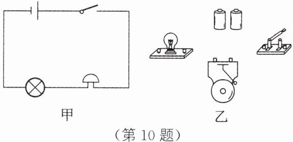 10. 请根据如图甲所示的电路图连接图乙的实物图。
