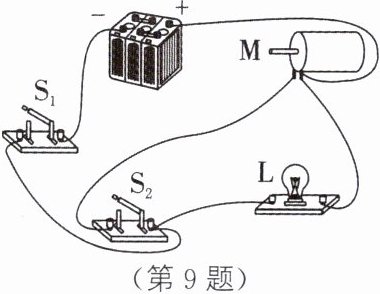 9. 将灯泡L和电动机M接入如图所示的电路中,下列说法中,正确的是( )