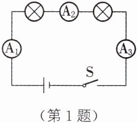 1. 如图所示为小明探究“串联电路中各处电流关系”的实验电路图。