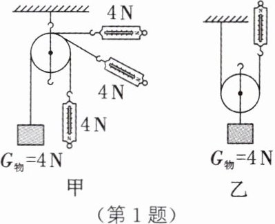 (2)他们研究动滑轮特点时,用不同的动滑轮匀速缓慢竖直提升4N的重物,如图乙所示。记录的数据如下表所示。