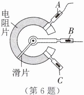 6. (2023·天津)电位器的实质是一种变阻器,如图所示为电位器的结构和连入电路的示意图,A、B、C是接线柱。当滑片向A端旋转时,连入电路的电阻 ( )