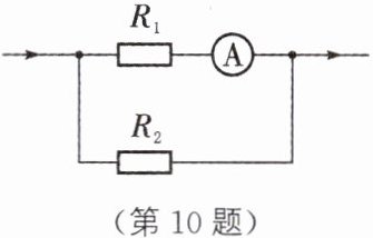 10. (2024·宿迁)在“探究并联电路电流特点”的活动中,部分电路如图所示,$R_1= 10Ω$,$R_2= 20Ω$,电流表有“0~0.6 A”和“0~3 A”两个量程,测量了通过电阻$R_1$的电流为 0.3 A。为完成实验探究,下列做法中,正确的是( )