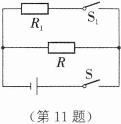 (2)同时闭合开关S、S₁,R和R₁并联,若通过干路的电流I=1.6 A,根据并联电路电压和电流规律可得R₁两端的电压U₁=U=24 V,通过R₁的电流I₁=I-I_R=1.6 A-1.2 A=0.4 A;由欧姆定律得R₁的阻值R₁=U₁/I₁=24 V/0.4 A=60 Ω