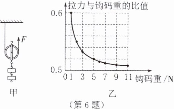 6. 如图甲所示为探究“动滑轮工作时的特点”实验的装置。