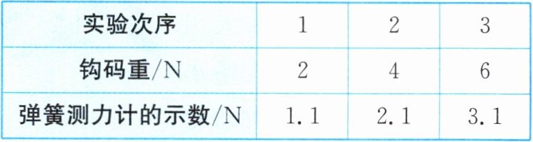 |实验次序|钩码重/N|弹簧测力计的示数/N|