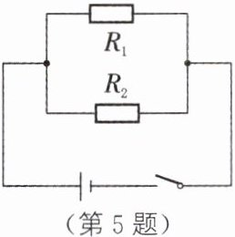 5. 如图所示,已知$R_1$与$R_2$两端所加电压为24 V。若$R_1= 80 Ω,$开关闭合后$,R_2$中的电流为0.2 A,则$R_2= ______Ω,$干路中电流I= ______A。再给$R_1、$$R_2$并联一个阻值为200 Ω的电阻,电路中的总电阻约为______Ω(结果保留一位小数),会变______(大/小)。
