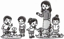 1 C 根据图片中老师带着学生们观察植物可知,他们在上生物课。